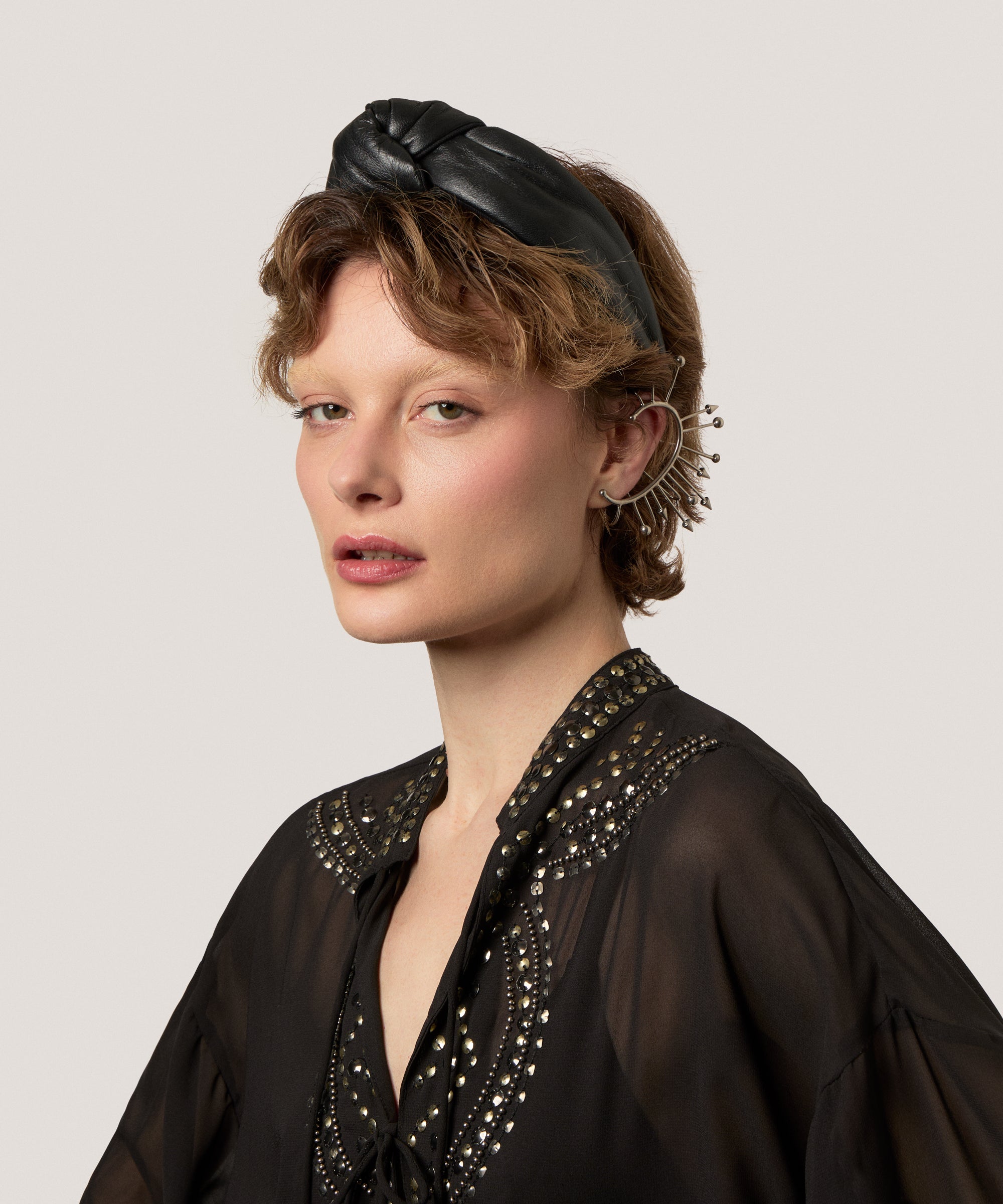 Leather Knotted Headband in Black