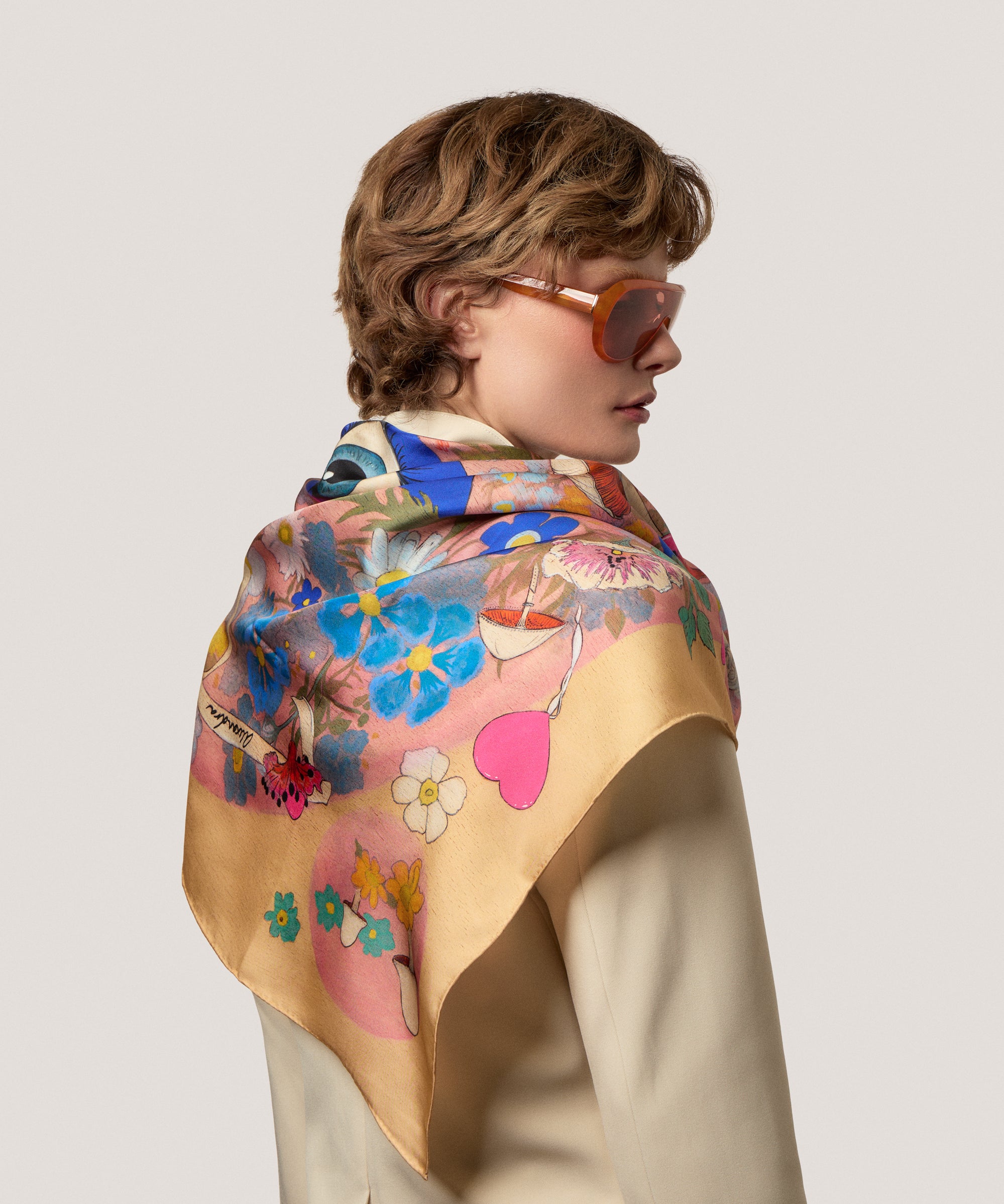 True Love Print Silk Scarf in Multicolour