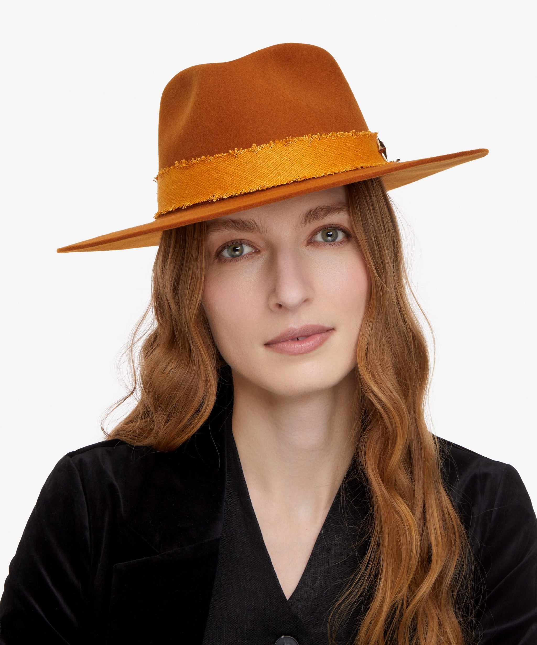 Wool Felt Fedora Hat in Saffron Yellow