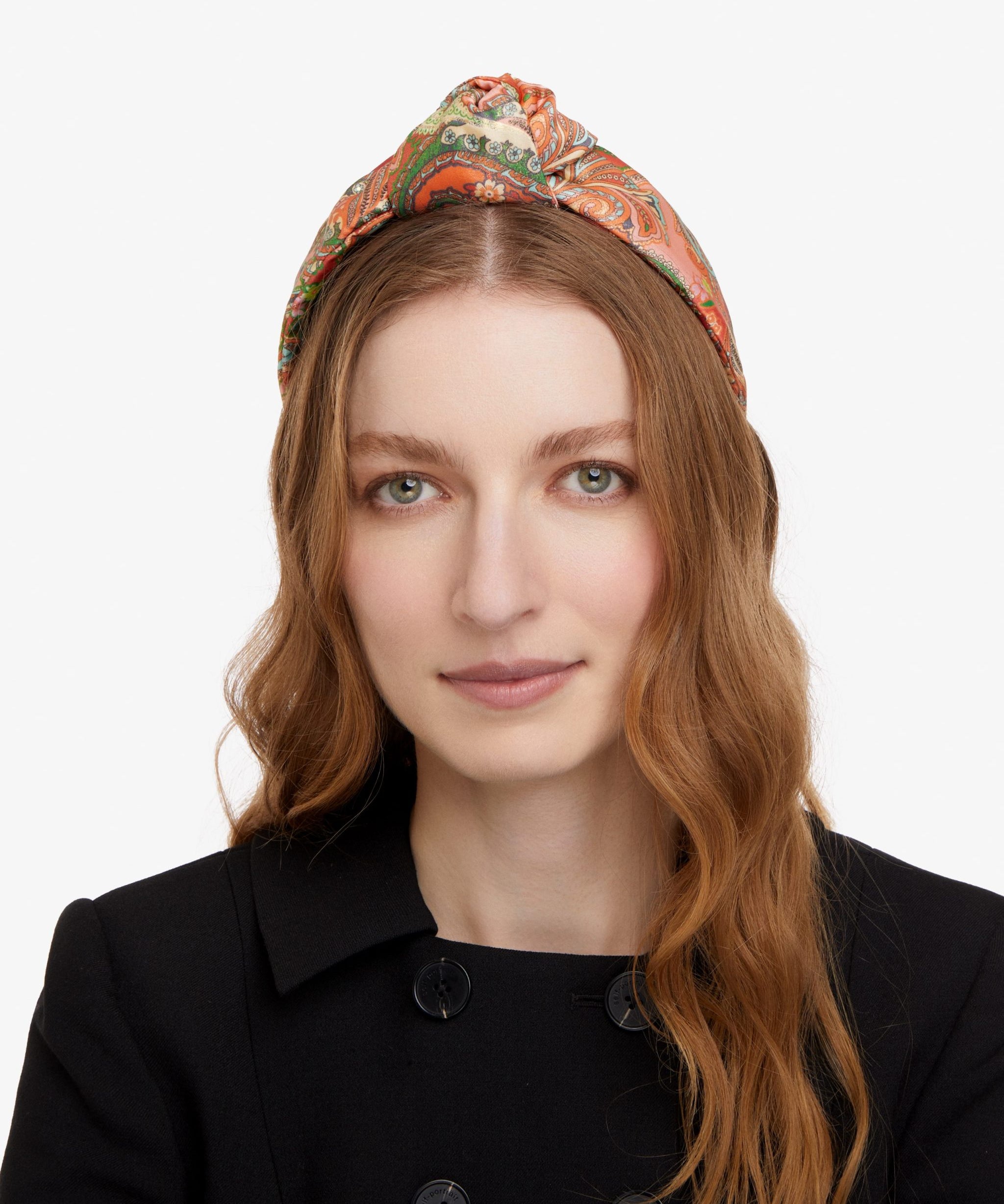 Pertinent Knotted Headband in Orange Paisley