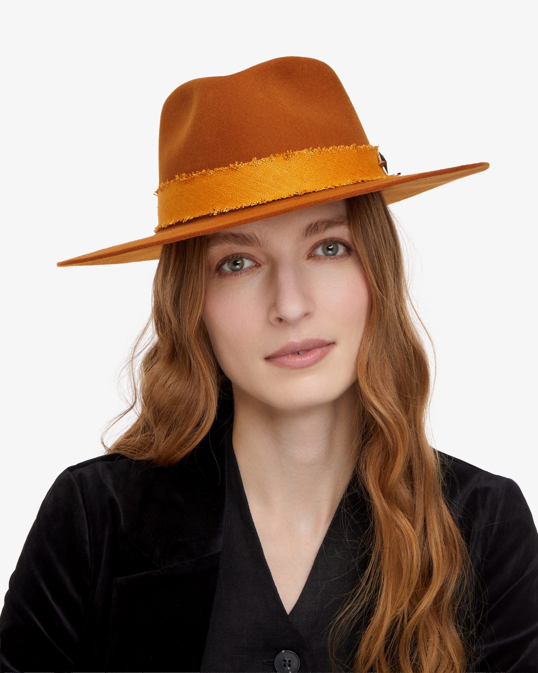 Wool Felt Fedora Hat in Saffron Yellow