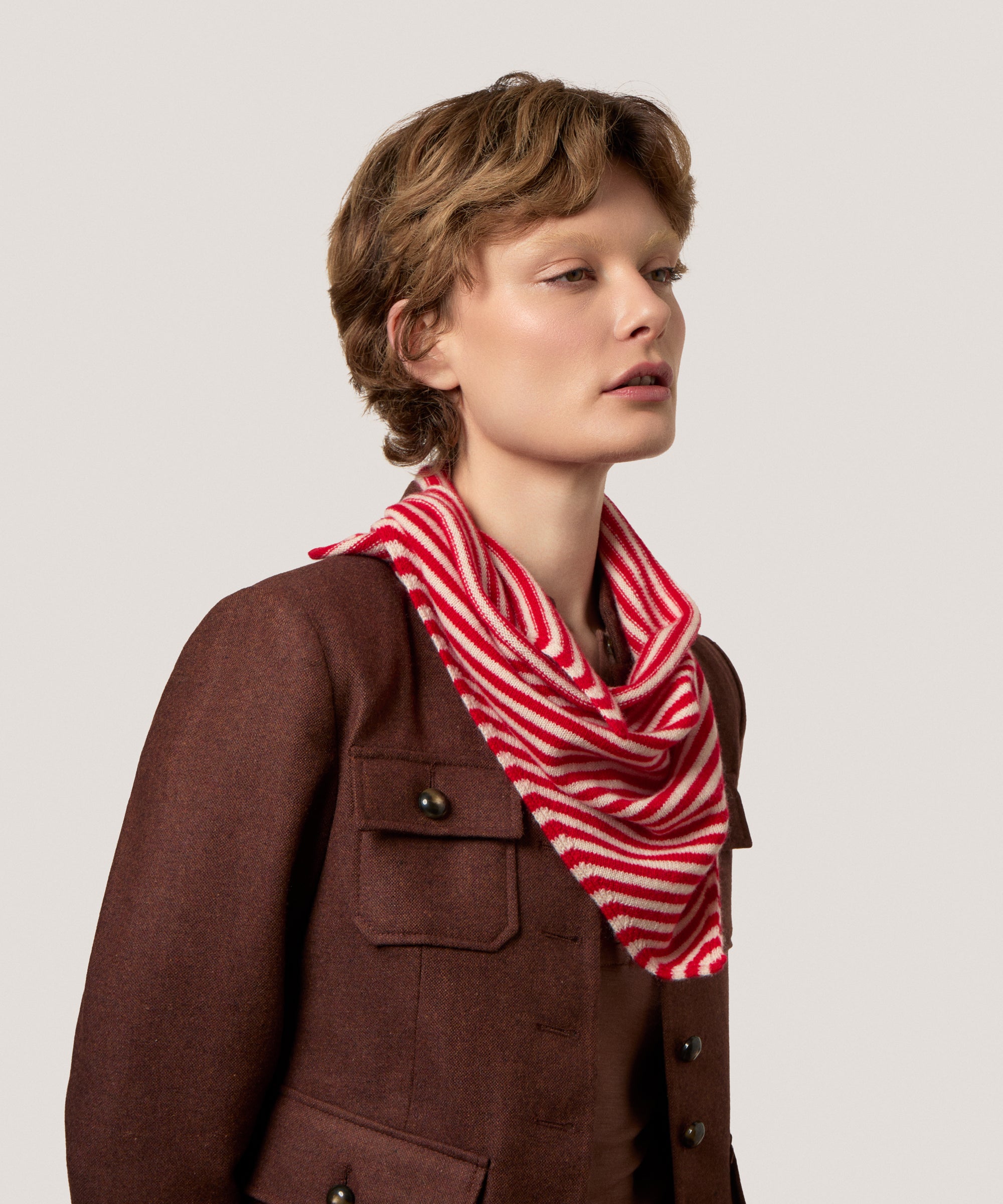 Cashmere Knitted Triangle Scarf in Red and Cream Stripe