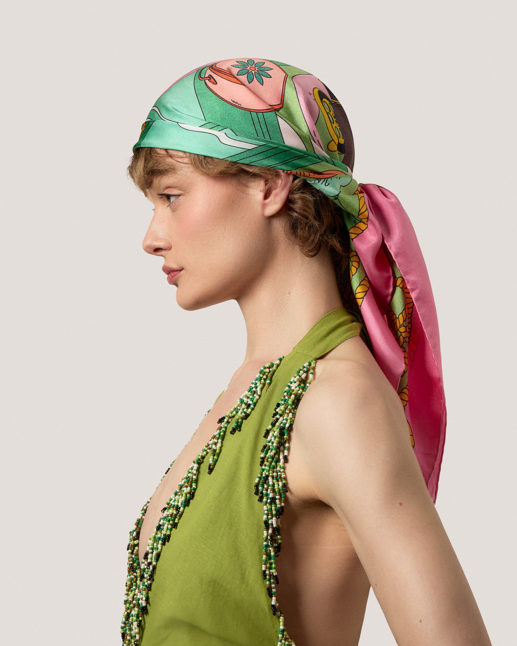 The perfect weight for tying as a headscarf, draping across the shoulder, tying around the neck or over the handle of a bag.