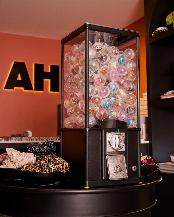 Try your luck with our lovely gachapon vending machine and receive one of our gorgeous mini hair claws in a random colour. A cute and playful hair grip suitable for all hair types, this petite clip is hand made in France from biodegradable cellulose acetate.