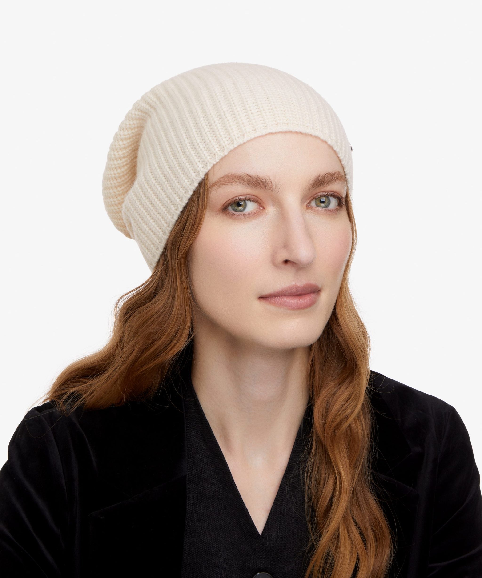 Cashmere Knitted Beanie Hat in Cream