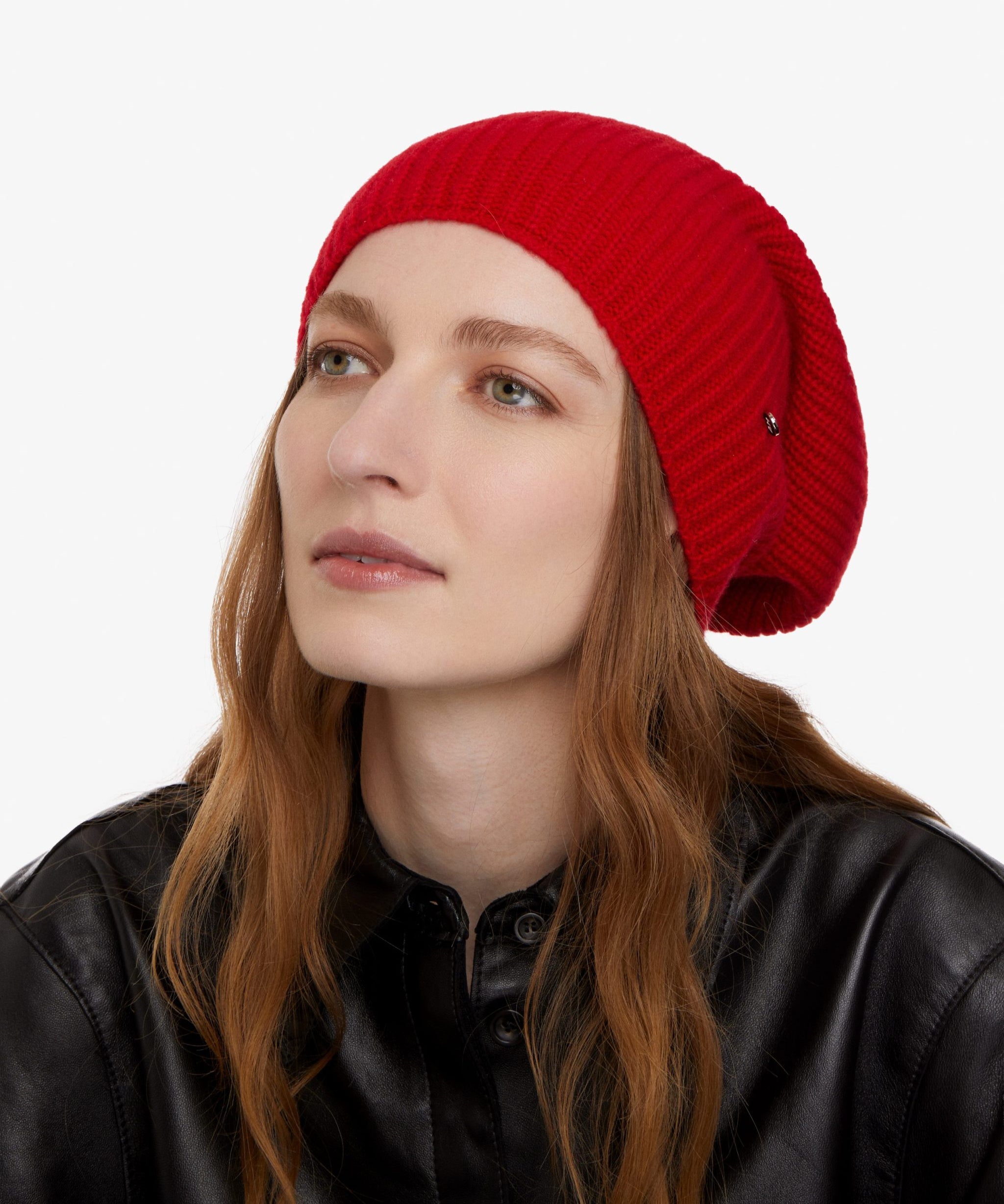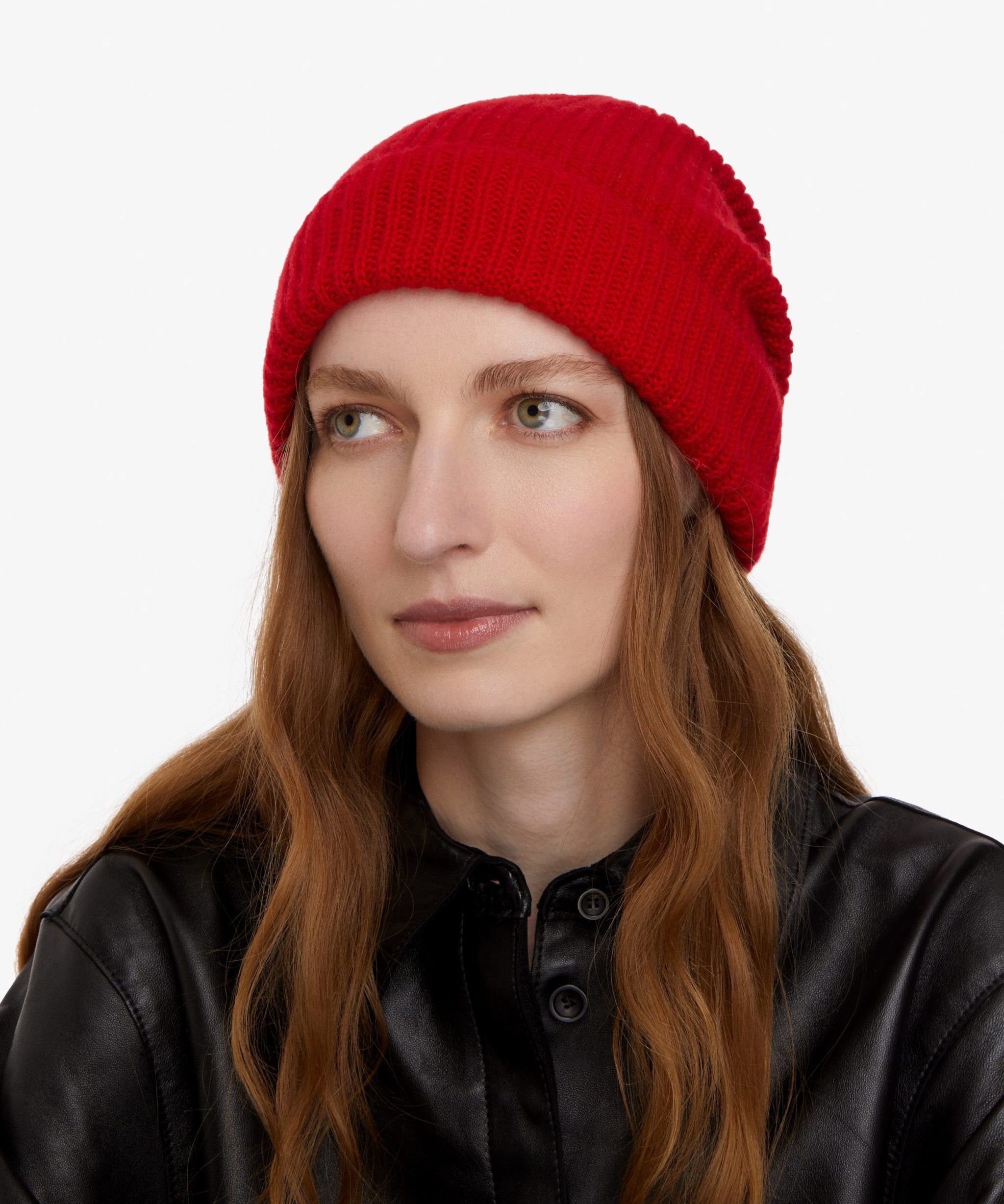 Cashmere Knitted Beanie Hat in Red